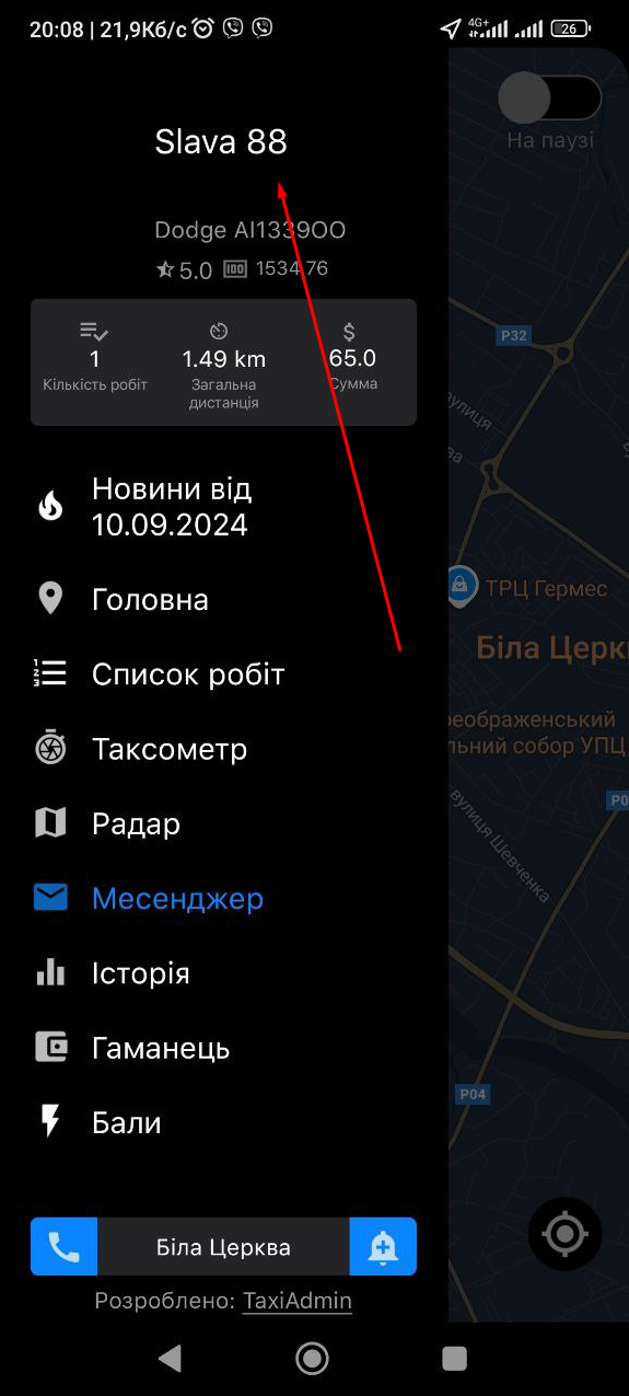 Для переходу в режим Паузи, вам потрібно активувати відповідну функцію в головному меню застосунку. При цьому ви не втрачаєте можливості бачити замовлення в Ефірі, але без призначення на замовлення.