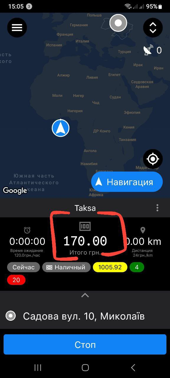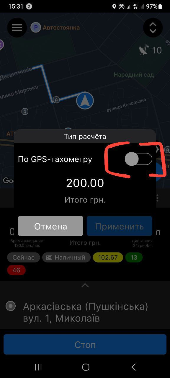 У випадку не вірної прокладки маршруту нашим комплексом водій зобов’язується сповістити про не співпадіння в технічну підтримку. Категорично забороняється самовільна зміна тарифу для клієнта! Якщо співпадіння тарифів буде підтверджено, водію буде нарахована компенсація згідно різниці тарифів.